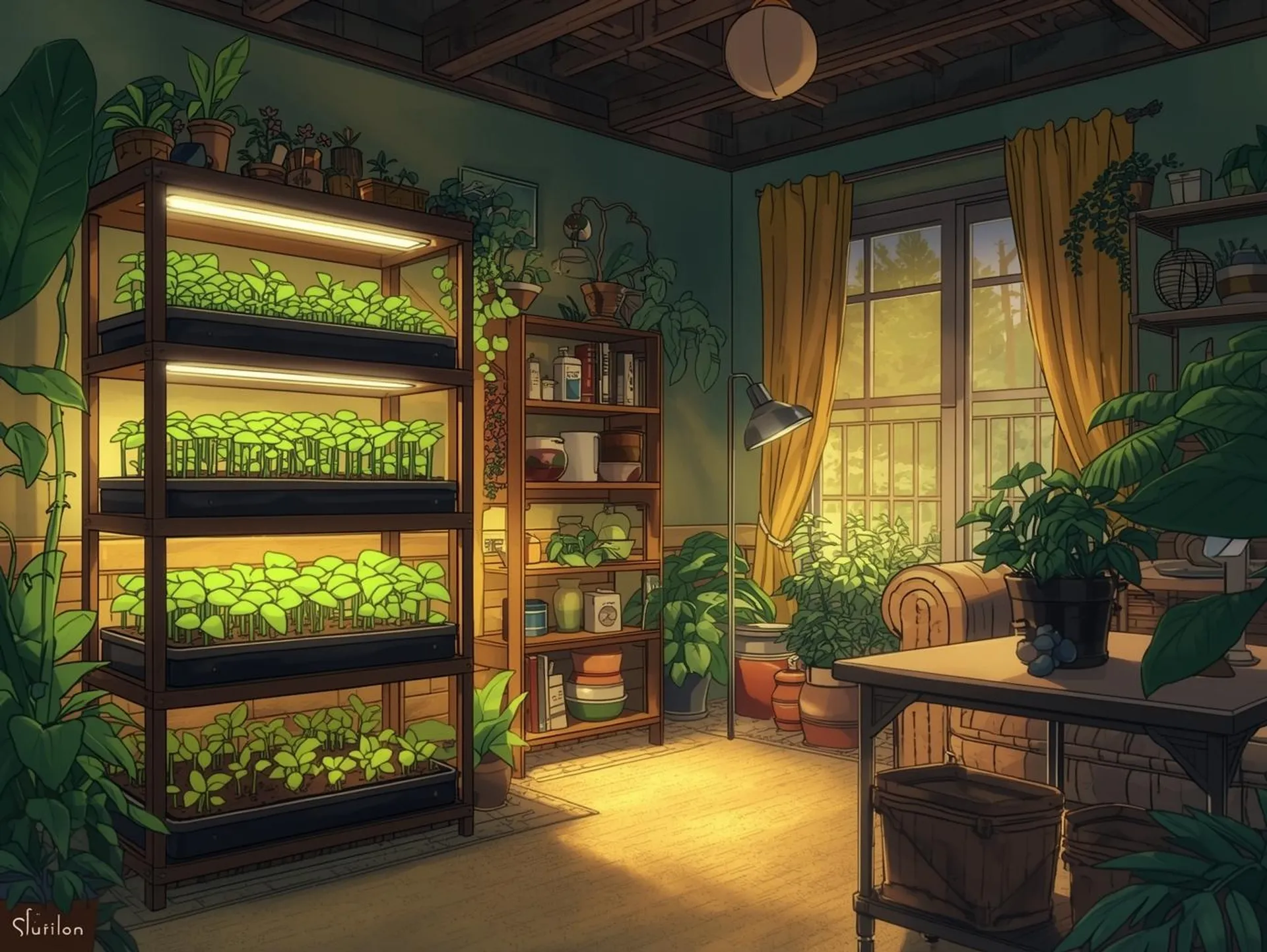 - Full-spectrum grow lights or shop lights